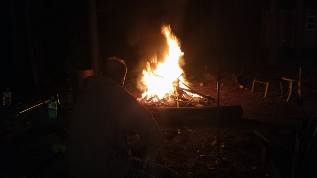 The early evenings were filled with mosquitoes who always drove us inside until around 9:30. Afterward we ventured outdoors to make a campfire. As usual, a small fire wouldn’t do.