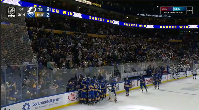 I thought they were going to blow this one. They played a great defensive third to give up a tying goal with 1 second left. OMG Sabres. But they owned possession in OT and Cozens with a wicked shot to win!